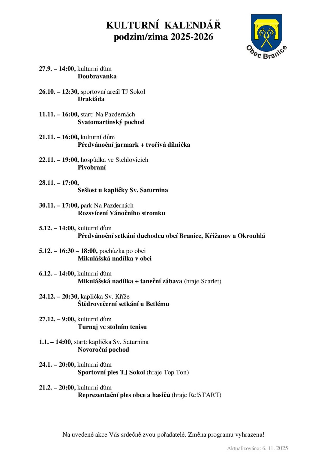 Kulturní kalendář
